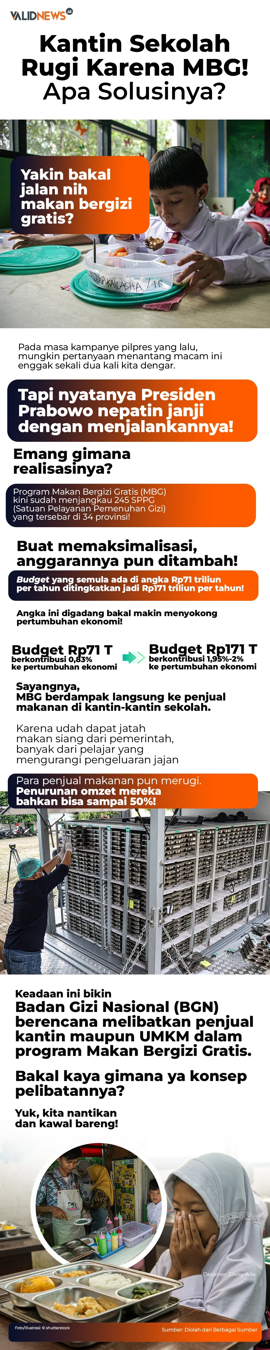 Para penjual makanan di kantin sekolah yang disambangi Validnews di atas pun menyambut hangat soal adanya peluang keterlibatan mereka dalam program MBG. Ros, misalnya, tanpa pikir panjang menyebut, akan menerima ajakan tersebut, jika pemerintah melayangkan tawaran untuk terlibat di program MBG.