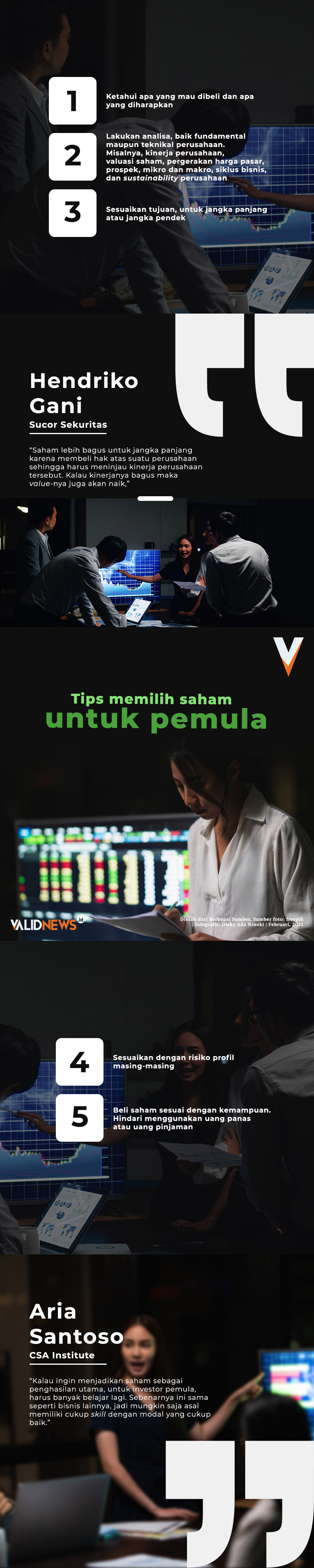 Kepada Validnews, Perencana Keuangan Imelda Tarigan menyebut, aktivitas investasi itu bisa dimulai sejak sekarang, oleh siapapun, dan usia berapapun. Dengan catatan sudah memahami betul kandungan risiko dalam kegiatan investasi.
