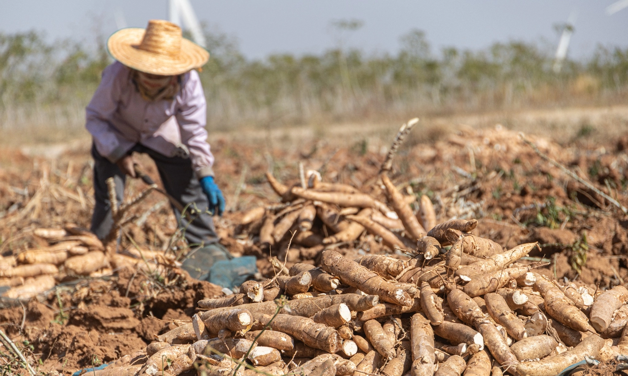 Petani memanen ubi kayu dari hasil pertanian, menggiling akar ubi kayu untuk membuat tepung tapioka. Shutterstock/Quality Stock Arts