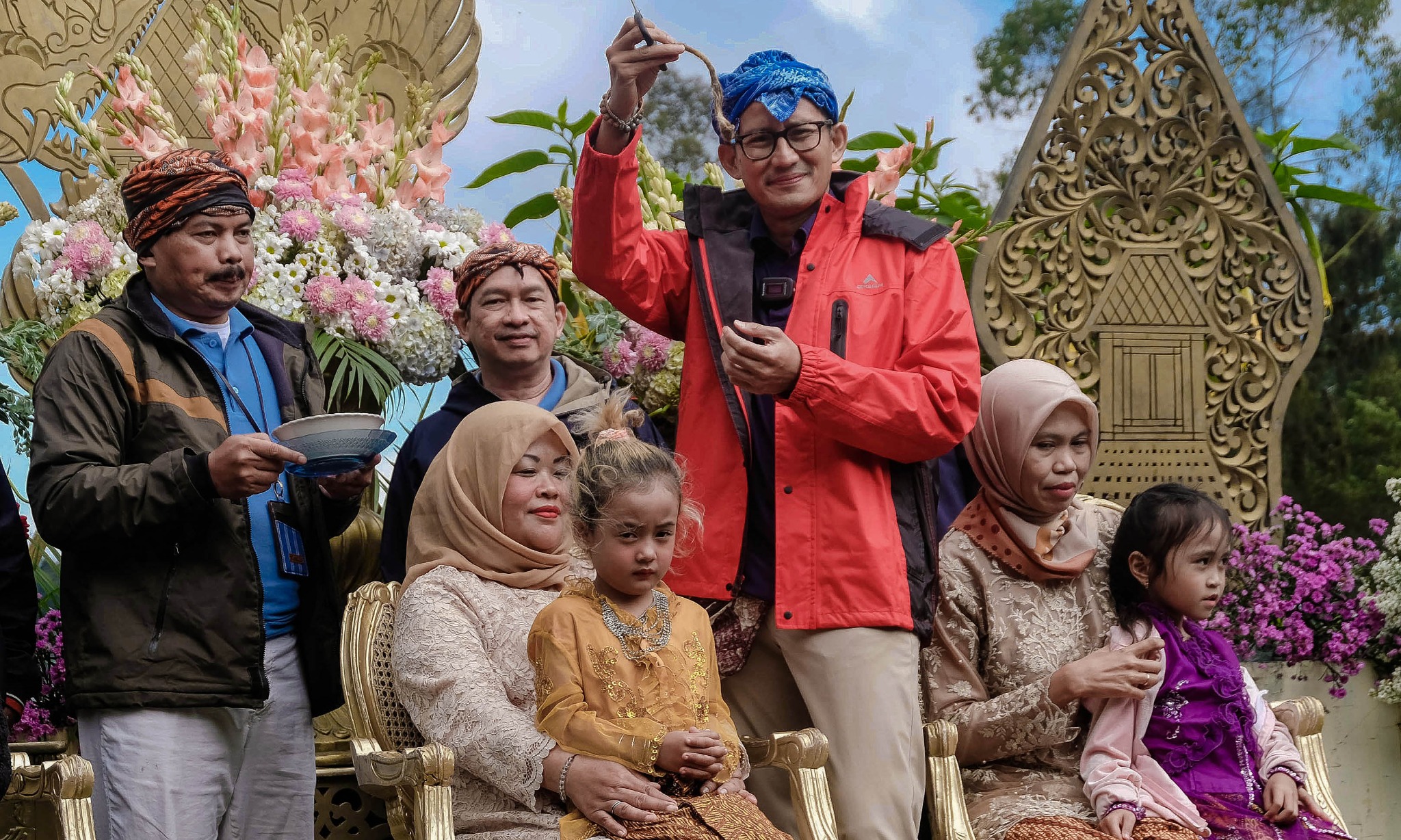 Menparekraf Sandiaga Uno memotong rambut gimbal peserta tradisi potong rambut gimbal di Telaga Cebong kawasan dataran tinggi Dieng, Desa Sembungan. ANTARA FOTO/Anis Efizudin Baca juga: Desa-desa Wisata Terbaik di Indonesia