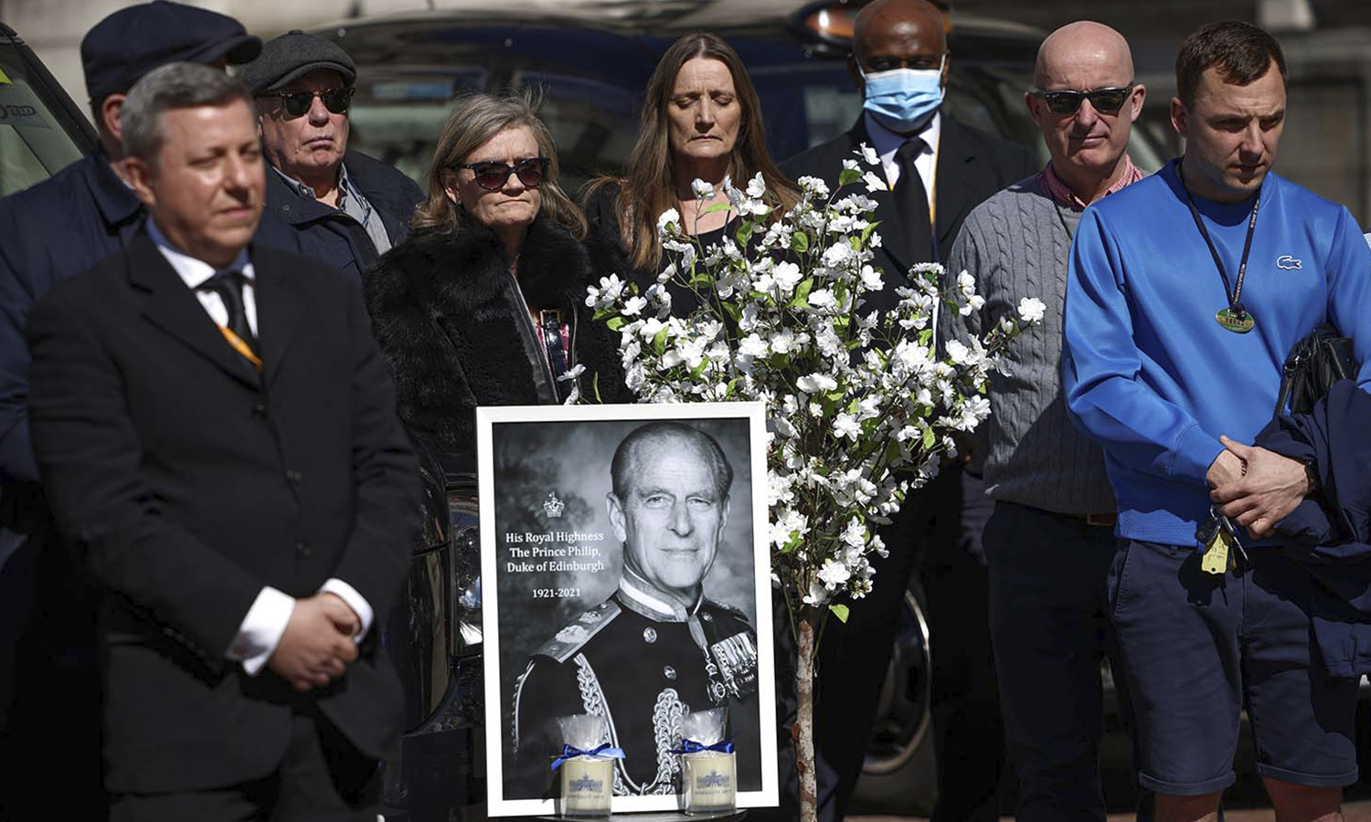 Supir taksi Hitam London mengheningkan cipta saat pemakaman Pangeran Philip, suami Ratu Elizabeth II yang meninggal dunia pada umur 99 tahun, di The Mall di London, Britain, Sabtu (17/4/2021). ANTARA FOTO/REUTERS/Henry Nicholls/