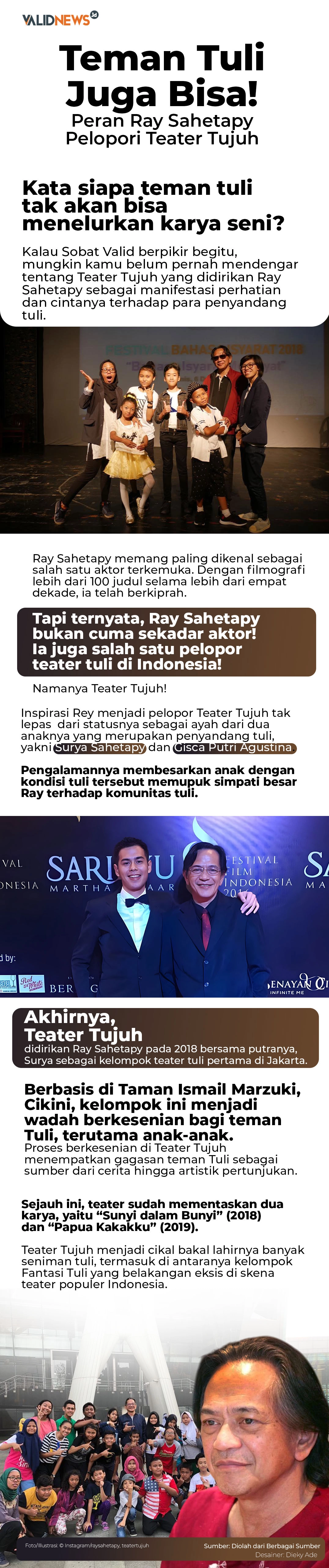 Ketika penonton hari ini jadi bisa mengakses pertunjukan musikal nan unik dari para Tuli di Jakarta, itu berawal dari ruang-ruang latihan Teater Tujuh. Kelompok ini diketahui merupakan warisan dari mendiang aktor terkemuka Indonesia, Ray Sahetapy.