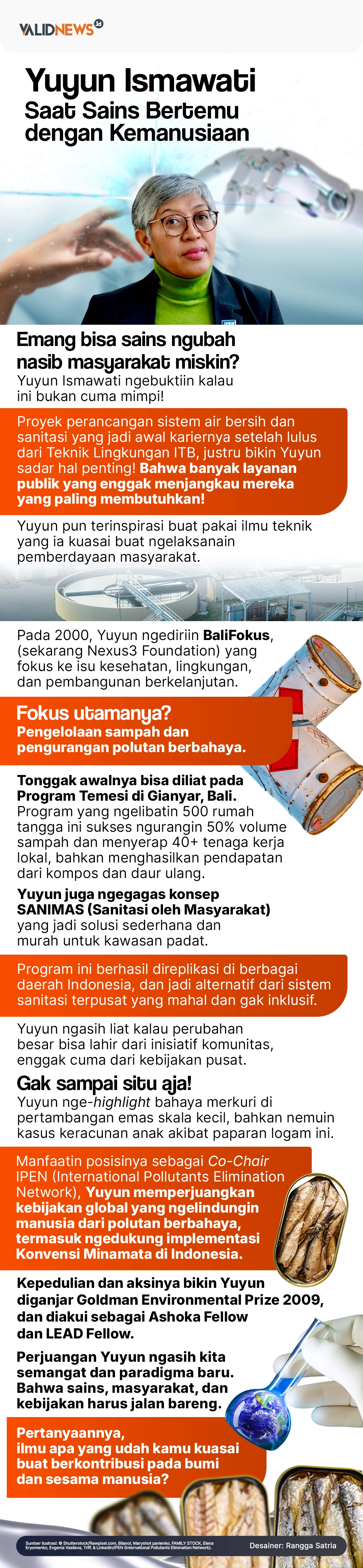 Sementara itu, seorang insinyur sejati adalah mereka yang mampu menjembatani teori dengan praktik, mengubah pengetahuan teknis menjadi solusi konkret yang membawa manfaat sosial, ekonomi, dan lingkungan bagi banyak orang. Ini yang ada di benak Yuyun Ismawati Drwiega, seorang insinyur lingkungan asal Indonesia yang namanya lekat dengan penggunaan sains untuk pengelolaan lingkungan yang lebih baik.