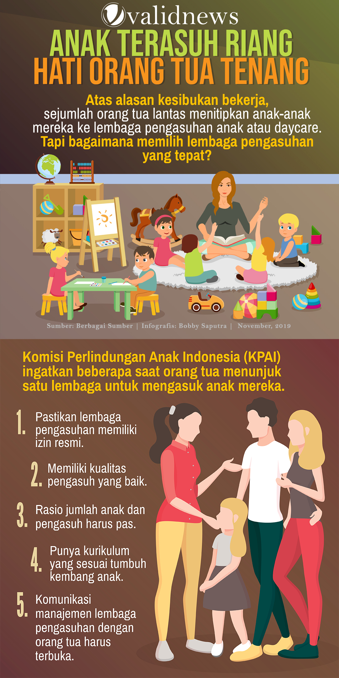 Komisioner KPAI Retno Listyarti menuturkan, ada beberapa hal yang perlu diperhatikan orang tua sebelum menitipkan anaknya di daycare. Menurut Retno, orangtua tidak boleh sembarangan memilih daycare yang akhirnya bisa berakibat buruk bagi anak.