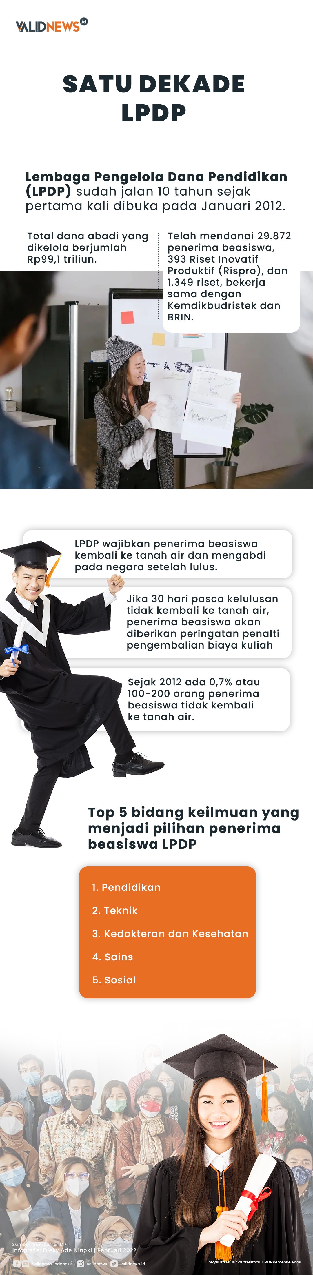Genap satu dekade LPDP membuka program beasiswa sejak Januari 2012, total dana abadi yang dikelola nilainya mencapai Rp99,1 triliun. Dana sebesar itu dikucurkan untuk mendanai 29.872 penerima beasiswa (awardee) dari LPDP.