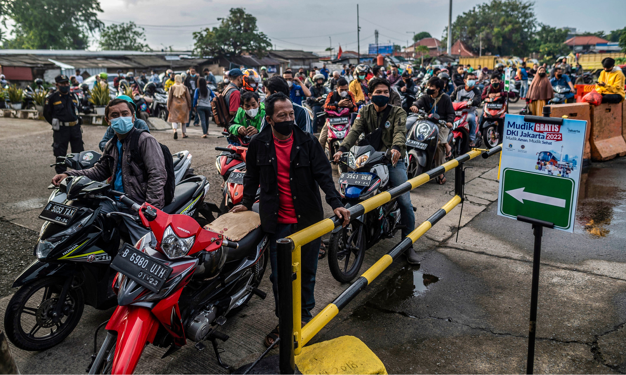 Sejumlah pengendara sepeda motor antre untuk melakukan verifikasi data dalam Mudik Gratis DKI Jakarta 2022 khusus sepeda motor di Terminal Pulo Gadung, Jakarta, Selasa (26/4/2022). Pemprov DKI Jakarta mengadakan mudik gratis bagi warga yang memiliki KTP domisili DKI Jakarta. Antara Foto/Aprillio AkbarJumlah Pemudik Meningkat