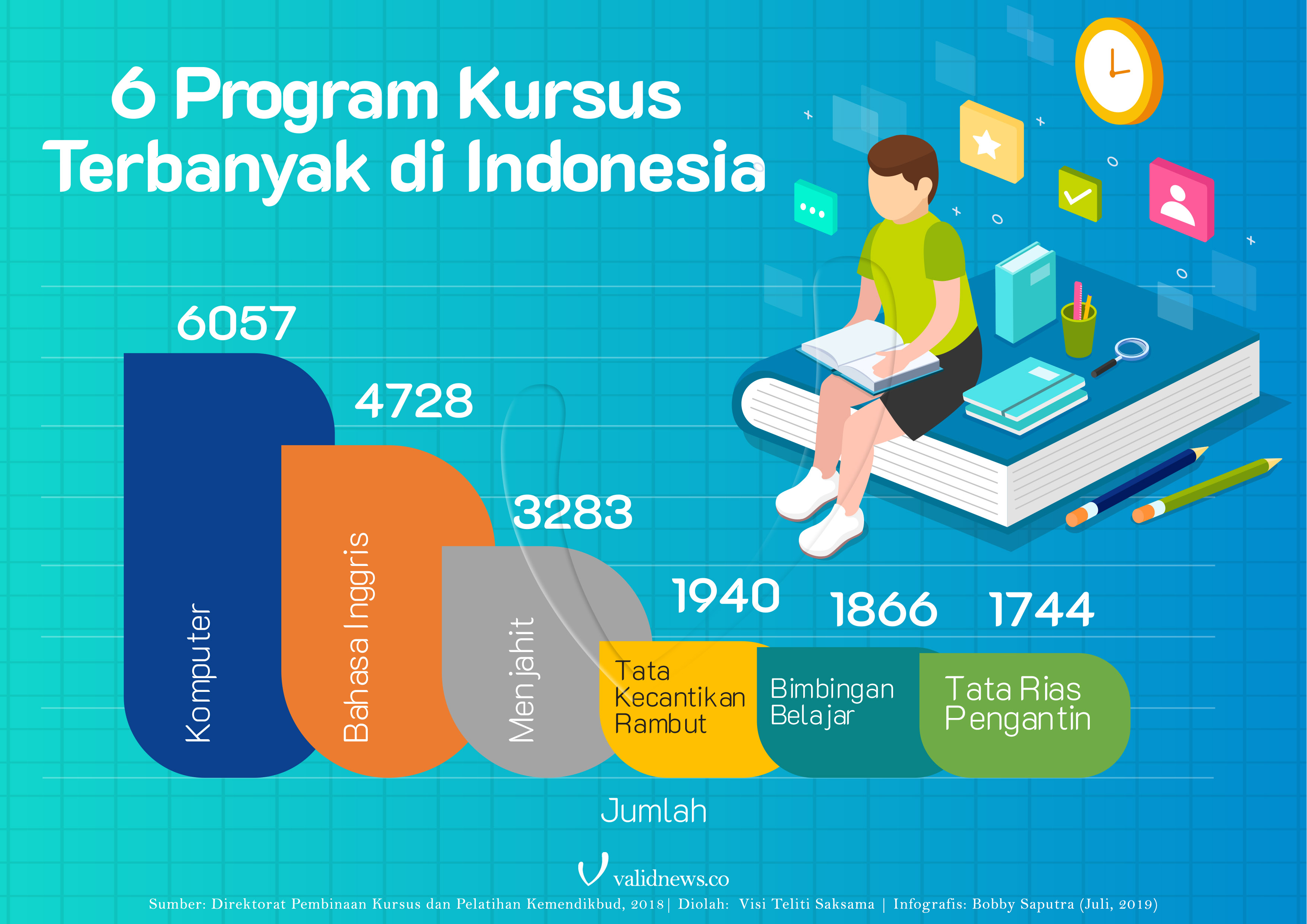 Pemandangan berbagai rumah bimbingan belajar yang terus bermunculan dan saling bersaing ini nyata adanya. Bimbingan belajar menjadi salah satu jenis kursus yang jumlahnya paling besar di Indonesia. Dalam publikasi yang diterbitkan Direktorat Pembinaan Kursus dan Pelatihan Kemendikbud (2018), bimbingan belajar berada di posisi kelima jenis kursus yang paling banyak keberadaannya. Dengan jumlah 1866 unit di seluruh Indonesia, bimbingan belajar hanya kalah jumlah dari kursus komputer, bahasa Inggris, menjahit, dan tata kecantikan rambut.