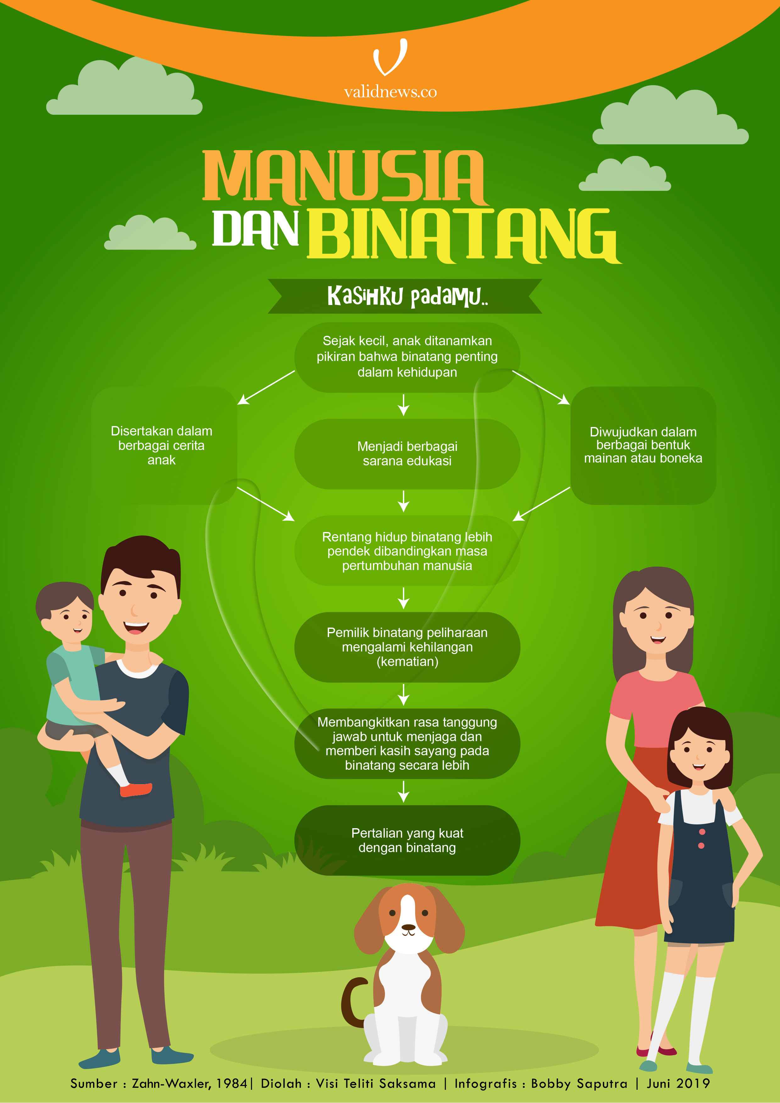 Tak dimungkiri, hubungan antara manusia dan binatang merupakan hal istimewa yang terjalin secara natural. Hubungan tersebut bahkan sudah dapat terbentuk sejak individu masih berumur sangat dini, seperti balita dalam cerita di atas. Kasih sayang manusia kepada berbagai binatang pun banyak tergambar dari berbagai bentuk kepedulian ketika makhluk tersebut menjadi korban berbagai fenomena di alam. Sebut saja banyaknya petisi hasil inisiasi para aktivis lingkungan hidup yang menggemakan kepunahan atau penderitaan binatang-binatang, disertai imbauan untuk melestarikan kehidupan mereka.